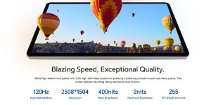 11.5-inch TFT LCD display with 1504 x 2508 pixel resolution (~254ppi density) supports 120Hz refresh rate and up to 400nits brightness for a smooth viewing experience in everyday use